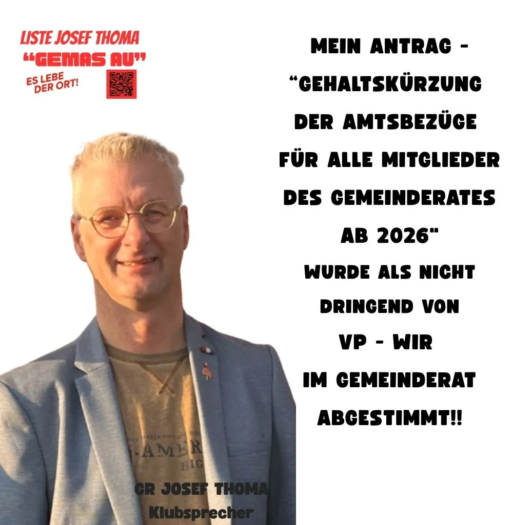 Unser Vorschlag die Ausschüsse von 5 auf 7 Mitglieder zu erhöhen (so wie in der GR-Periode 2015 bis 2020) und somit als Liste Josef Thoma mit Sitz und Stimme wieder dabei zu sein, wurde von den politischen Mitbewerbern ABGELEHNT.